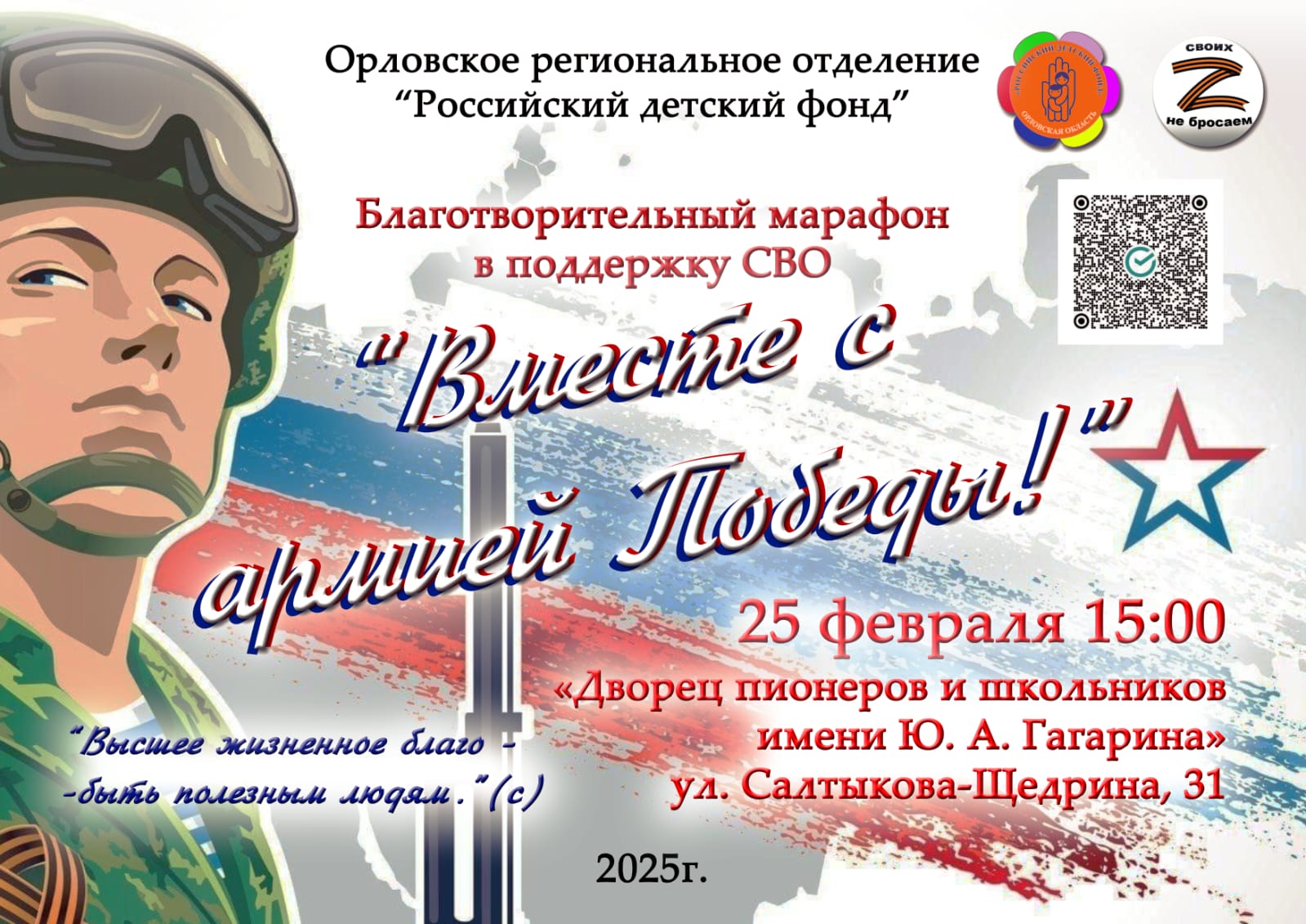 В преддверии Дня защитника Отечества проводится масштабный марафон «Вместе с армией Победы!», организатором которого является Орловское региональное отделение общероссийского общественного благотворительного фонда «Российский детский фонд».